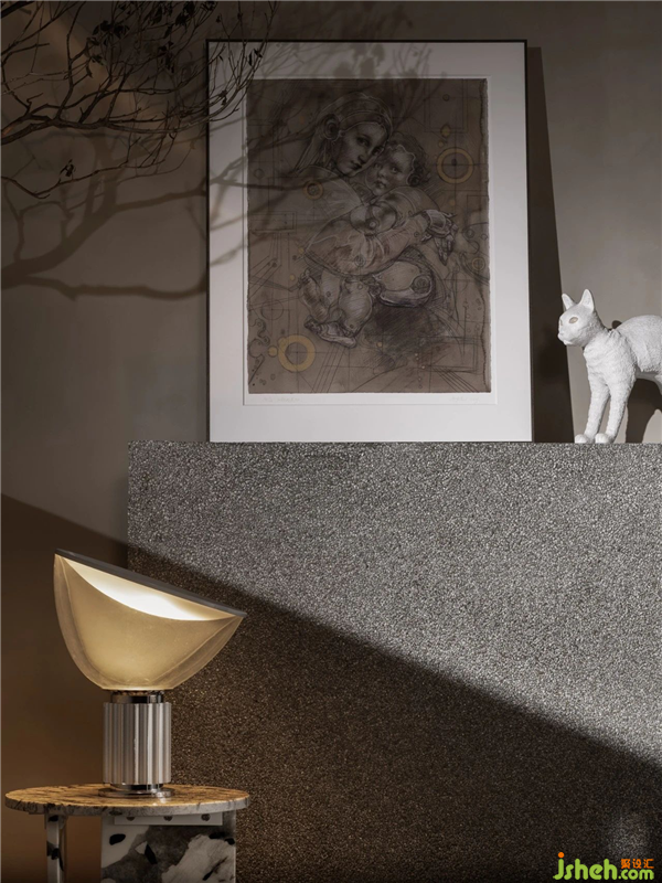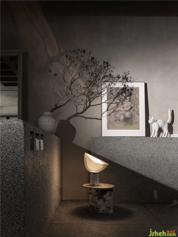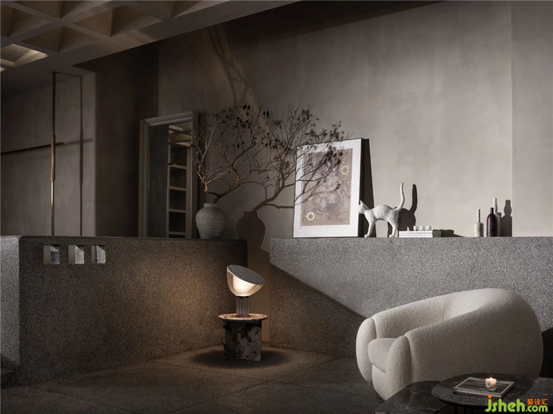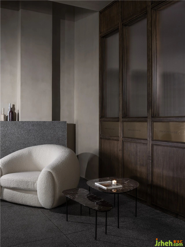 其次,展廳設(shè)計(jì)在軟裝的選擇上我們摒棄了統(tǒng)一風(fēng)格產(chǎn)品扎堆的處理方式。而是以一個(gè)買手的姿態(tài)去挑選適合的家具產(chǎn)品。從Franco的Tre pezzi扶手椅,到Jean Royere的大白熊,再到當(dāng)代傳奇設(shè)計(jì)師Philippe Starck的經(jīng)典三足椅。無一不是向經(jīng)典致敬。而flos的燈具與cc-tapis的地毯則是當(dāng)下產(chǎn)品設(shè)計(jì)中的典范。我們將其整合在一起,在這個(gè)既沖突又奇妙的空間里,趣味橫生。
