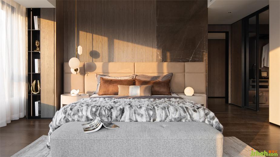 東方美學(xué),追求無影無跡的意景與情愫的印合,景是情之媒,情乃景之主。主人房巧妙借用光線,與金屬、布面、木飾、石材等材質(zhì)與空間發(fā)生關(guān)聯(lián),互相生發(fā),鄭州豪宅設(shè)計(jì)在起承轉(zhuǎn)合間形成萬物一齊。