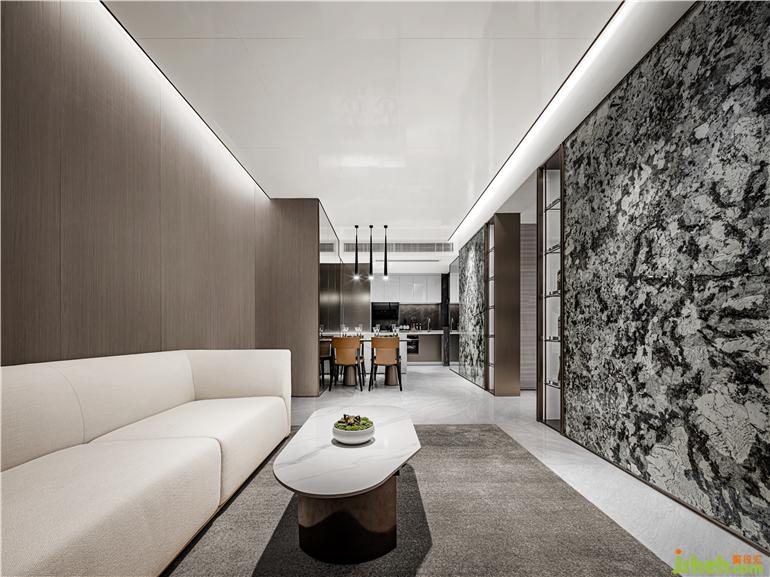 空間如畫,設(shè)計(jì)師認(rèn)為在節(jié)奏飛快,鋼鐵水泥建造的大都會(huì)城市,樣板間設(shè)計(jì)師有必要讓生活變得更加詩意從容,讓更多的人放慢腳步,去感受、去體會(huì)詩和遠(yuǎn)方,在空間設(shè)計(jì)中,植入天然大理石畫面,連同客餐廳,氣勢如虹,猶如一幅東方意境的山水文人畫,仿佛穿越回那個(gè)每個(gè)人心中都有一片山水的時(shí)代