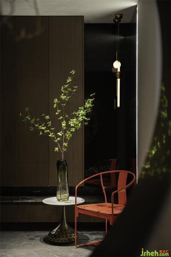 玄關(guān)從細節(jié)處著墨,讓藝術(shù)融入真我。住宅設(shè)計用藝術(shù)畫、山石和綠植等元素彰顯主人的審美品味。