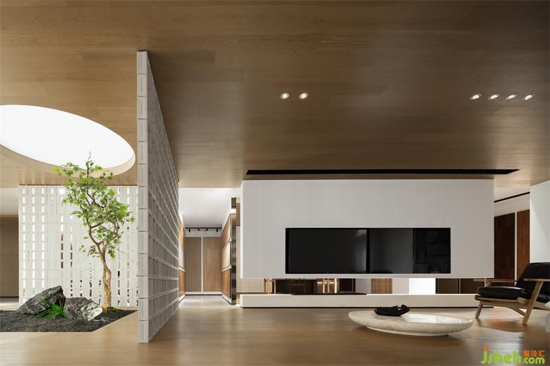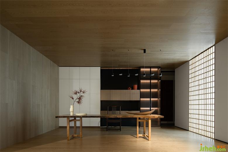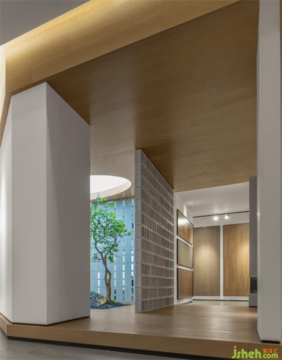 洽談區(qū)將極簡、自然的侘寂風(fēng)一以貫之
