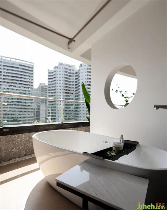 拋開一成不變的設計,大膽的地在臥室外的陽臺上放上一個浴缸,將情調與個性發(fā)揮到極致,在午后的時光,品著紅酒、曬著太陽、泡在浴缸里,這樣的閑暇是多么的舒適,足見主人的不凡見識與氣質。