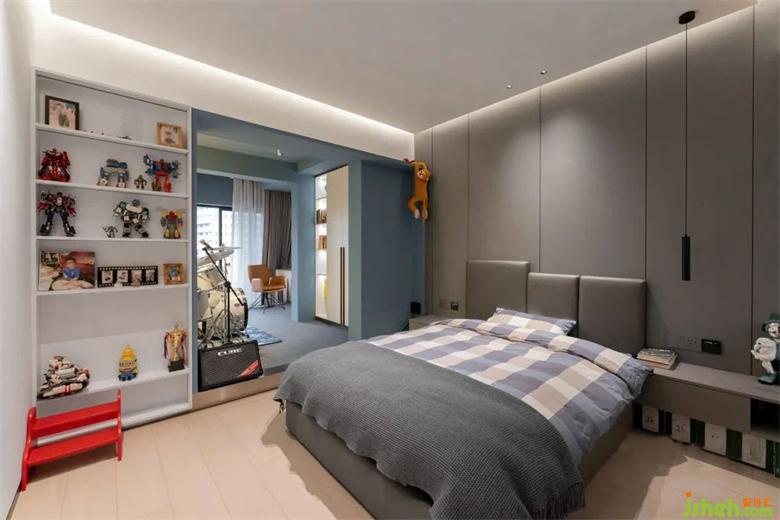 周全的設(shè)計(jì)建立在對(duì)業(yè)主生活的體察上,占據(jù)陽(yáng)臺(tái)的一部分融入臥室,麗雅龍城住宅設(shè)計(jì)用藍(lán)色盒子點(diǎn)亮少年的夢(mèng)想,與休息區(qū)域動(dòng)靜結(jié)合,色彩的搭配碰撞出蓬勃的活力。