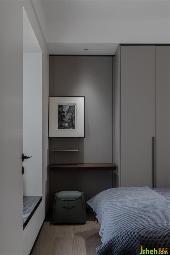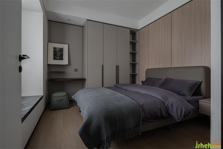 次臥用灰色與木色墻板相結(jié)合,麗雅龍城住宅設(shè)計(jì)打造豐富的視覺效果。漸進(jìn)的層次、素雅的配色,都在為整個(gè)空間增添生活本源。