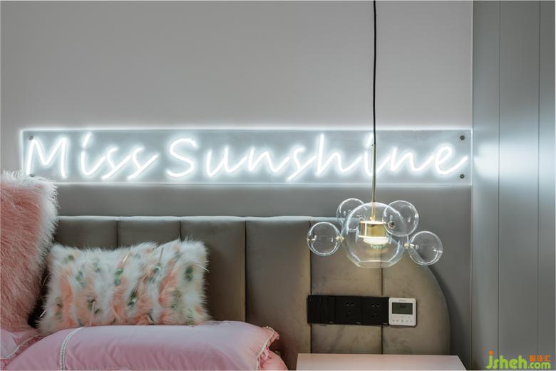 淡淡的灰粉色與閃亮的英文氛圍燈,組成了一間夢幻般的房間。相比男孩房,一間是沉穩(wěn)向上的青年,一間是活潑無憂的少女。鑫嘉園家居設計明朗色彩與幾何造型交織出立體的畫像,明晰的性格,透過設計的筆法彌漫空間,在去符號化的場景中熏陶心靈。