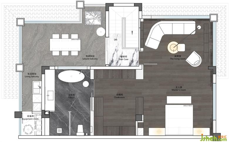 3、三樓整個空間為主臥套房,配備寬裕的起居區(qū)、衣帽間、衛(wèi)生間,功能齊全,舒適有調(diào)