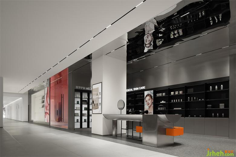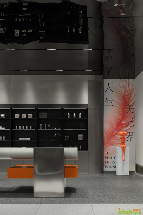 亮眼的橙在暗色背景下突出品牌logo,醫(yī)美旗艦店裝修設(shè)計(jì)以干練、簡(jiǎn)潔、直達(dá)人心的表達(dá)方式展現(xiàn)出純粹的美學(xué),與醫(yī)學(xué)館“以誠(chéng)造美,本質(zhì)美學(xué)”的核心價(jià)值相契合。