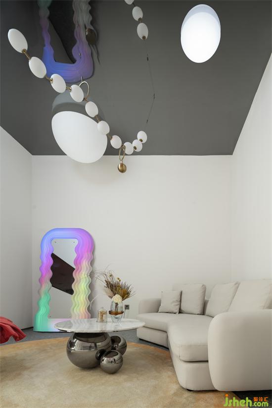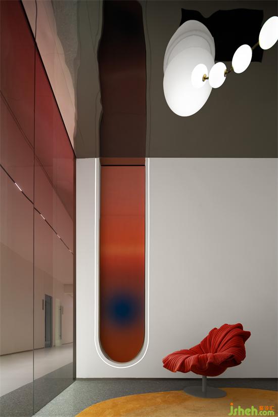 燈是一顆顆精美的珍珠掛在空中,座椅是花瓣一片片落下,鏡子由波浪與彩虹堆疊,頂面不銹鋼的反射讓空間人與物倒影成趣,醫(yī)美旗艦店裝修設(shè)計(jì)每一份美的創(chuàng)意都融合在這里,一個(gè)充滿人文與詩(shī)情的VIP休息區(qū)得以建成。