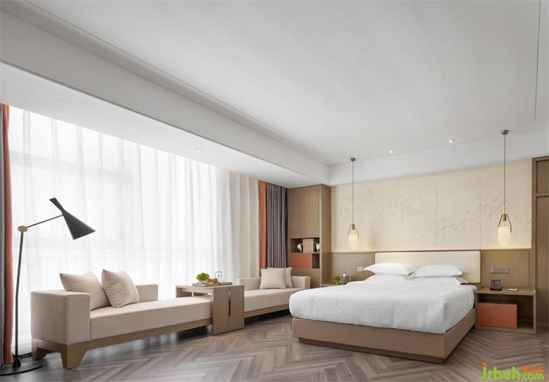 The hard decoration design of the guest room shows the minimalist and tough style with warm log material paving, which meets the best coherence point of inspiration between contemporary and traditional. The deluxe king bed room is inspired by the quicksand scenery of Longquan shoal, which embodies the picture of surging sand as a giant mural, covered in the background of the bed of the room. It not only gives tourists a spiritual shock, but embeds the strong impression of Guizhou into their memory, so as to realize the unity of natural interest and humanistic spirit.