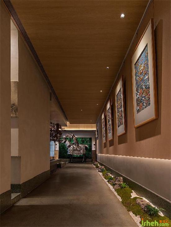 穿行于松枝竹影間,沿途的砂石敷沙與青石蒼苔錯落分布,深圳晴舒料理設(shè)計構(gòu)成一幅枯山水庭院的空闊景致。木質(zhì)墻面如泛黃的唐紙,光線穿過松枝漫射四內(nèi),在南宋畫家陳容的長卷《九龍圖》上留下濃淡有致的陰翳。更勝于浮世繪的刻板,《九龍圖》的“云蒸雨飛、天垂海立”恢弘氣勢延伸了空間的內(nèi)涵與向度,引發(fā)歷史與精神的共鳴。