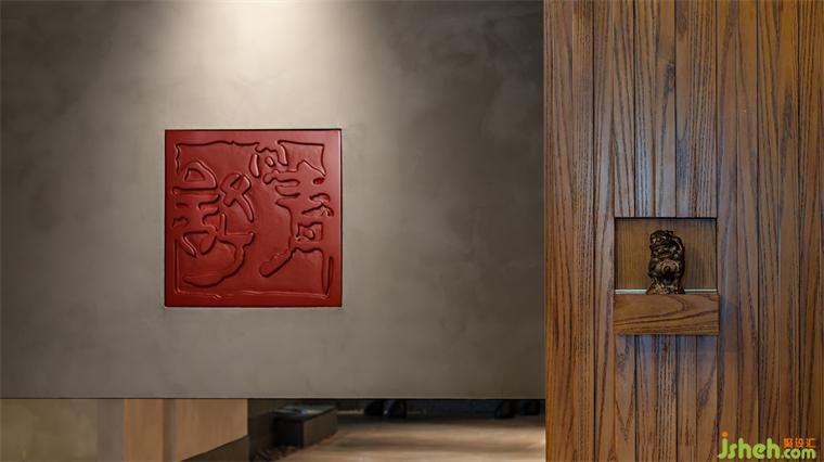 餐廳入口設(shè)計采用隱玄妙手法,通過機(jī)關(guān)開啟門扉,翩然入目的即是以印章形式展現(xiàn)的“晴舒”二字,深圳晴舒料理設(shè)計師從篆刻藝術(shù)入手,在中國古典藝術(shù)與日式民族文化中找到共通之處,將之升華為含蓄委婉的東方寫意之美,自細(xì)節(jié)處將澄明禪意洇染開來。