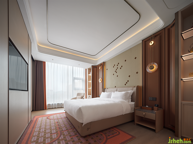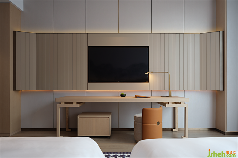 酒店是羈旅的港灣,凝縮著游者對一座城市的期待與想象。因而在房間的設計上,既要注入在地風俗傳統(tǒng),也須在設計中保留親和熟悉的元素,本案酒店設計將民族器物組合為特色裝飾,把段氏紋樣繪入建筑的線條和肌理中,結合品質軟裝,恰如久別的老友以最富文心的禮物款待遠道的嘉賓。