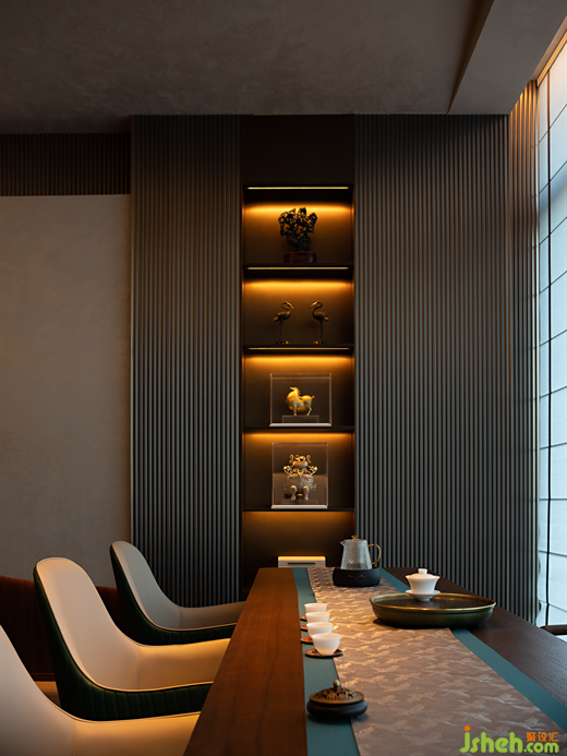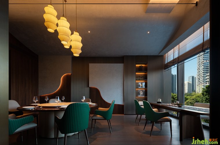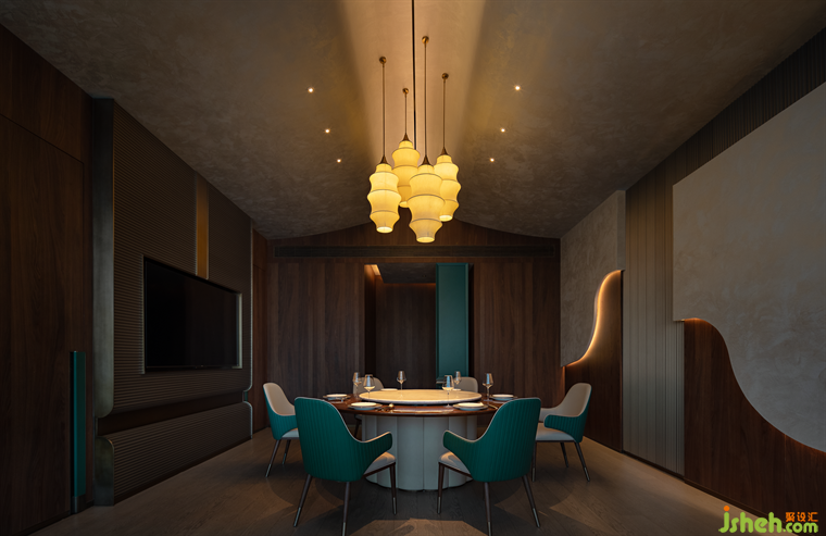 鶴是中國傳統(tǒng)文化中極富風(fēng)致雅韻的元素,道骨澄心,仙姿天壽,設(shè)計師將瑞鶴元素融入包間設(shè)計中,潮菜餐廳設(shè)計以藝術(shù)裝置具化瑞鶴起舞的景象,臨水弄影的姿態(tài)栩栩如生,將自然文心與古意雅趣包容于一域。Crane is an element of traditional Chinese culture that is very rich in elegance, Taoist bone and heart, immortal posture and longevity, the designer will incorporate the crane element into the design of the private room, with art installations to materialize the scene of the crane dancing, and the gesture of the water in the shadow of the lifelike, will be the natural heart of the literature and the old-fashioned elegance of a region.