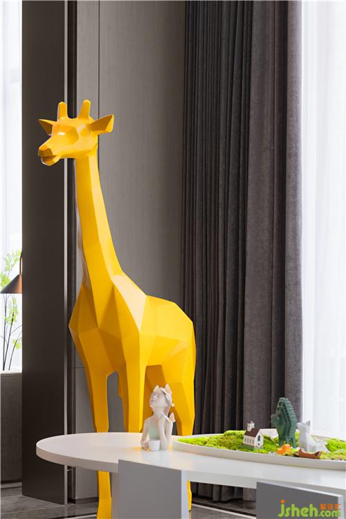 野趣是生命力精巧的凝結(jié),亦是想象力出發(fā)的驛站。懸垂的綠植讓蔥蘢以漂浮的形式置入童趣天地,玩具擺件的搭配足以描繪出游戲里的綠野仙蹤。