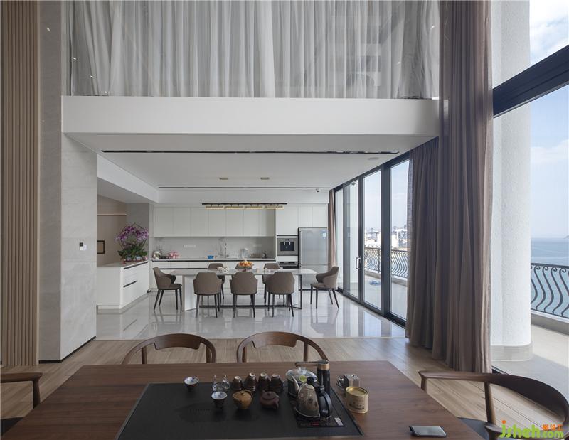 隨之步入會客廳以室內(nèi)序幕全開放式會客廳-茶藝廳-開放式中廚-中餐廳-西廚-西餐廳串聯(lián)橋接、它是一種包容、它是一種開放、它安靜的接納、利用大面積通透玻璃將海景由外引里。簡單質(zhì)樸而源遠(yuǎn)流長。