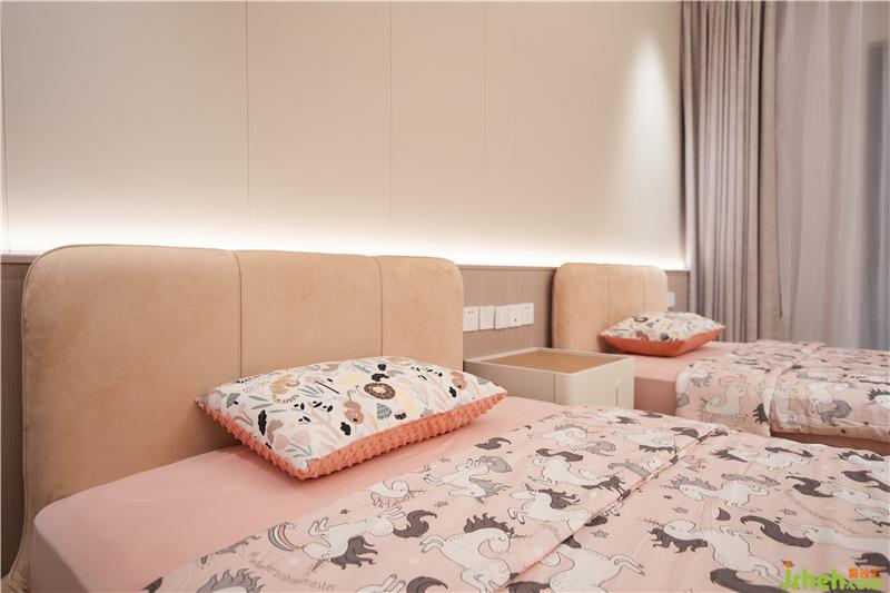 小孩活動(dòng)室不僅是活動(dòng)的空間,附帶智能升降床、霧化玻璃、以小見(jiàn)大的功能分布,設(shè)計(jì)有意共享一部分空間給予過(guò)渡緩沖的,清晨推開窗,能聽見(jiàn)動(dòng)聽的鳥鳴聲,自然規(guī)律,情景交融