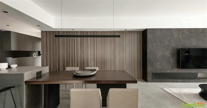 島臺(tái)與餐桌的一體式設(shè)計(jì),營(yíng)造了融融的會(huì)客式餐廚空間。LDK一體化生活情境,讓家的氛圍更濃烈更溫馨。
