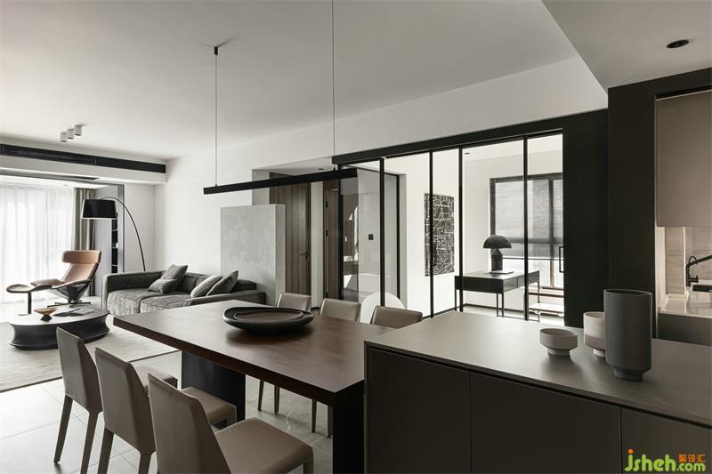 The creation of more open spaces makes it possible for the dining room and the living room to be linked. The choice of transparent glass doors also drives the interaction between the dining room, living room and the study; no matter where the family is active, they can always find him (her) when they look up. After the reorganization of the entire space, the dining room and kitchen, the living room, and the study can be seen. The space scene has been enriched, making the home more possible...