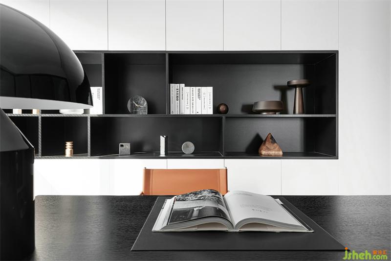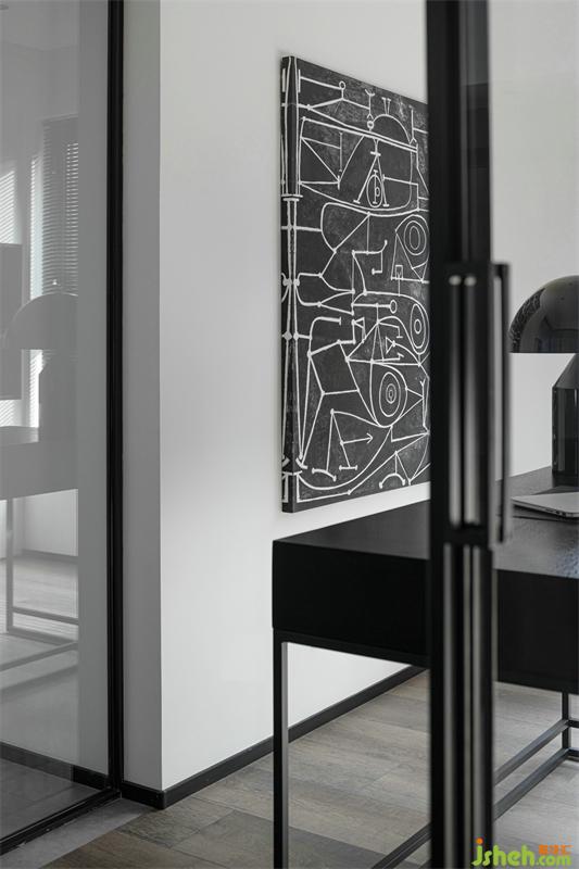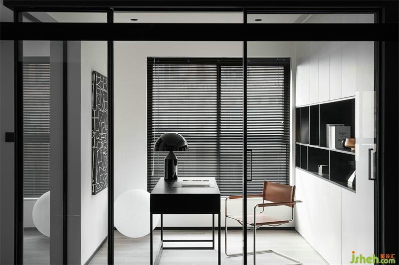 抽象幾何掛畫,點(diǎn)亮了整個(gè)書房;給人以無(wú)限遐想,思考的維度也無(wú)限延伸。玻璃移門圍合書房空間,實(shí)現(xiàn)了視覺(jué)最大化;采光極好讓人心境明朗。一整面的收納+局部展示柜,美化實(shí)用功能,保證了空間的整潔完整;半開(kāi)放的層板設(shè)計(jì)更是增加了空間與空間的通透與藝術(shù)性。