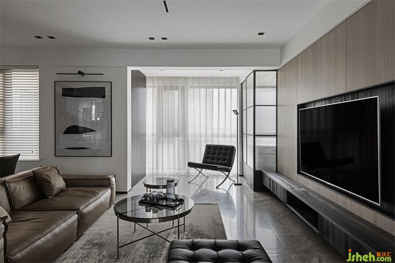 屋主對(duì)書柜要求要儲(chǔ)物性強(qiáng),家居設(shè)計(jì)以封閉柜門為主,小部分開放式柜體,放置個(gè)性化物件增加了空間情緒。