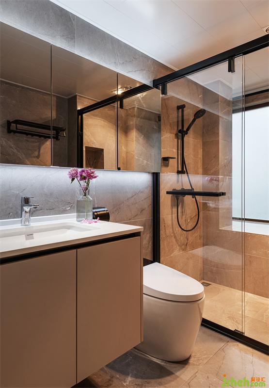 衛(wèi)生間作為功能性空間,洗漱臺(tái)、馬桶、淋浴室置于同一空間,極好地將生活的便捷與藝術(shù)融合。