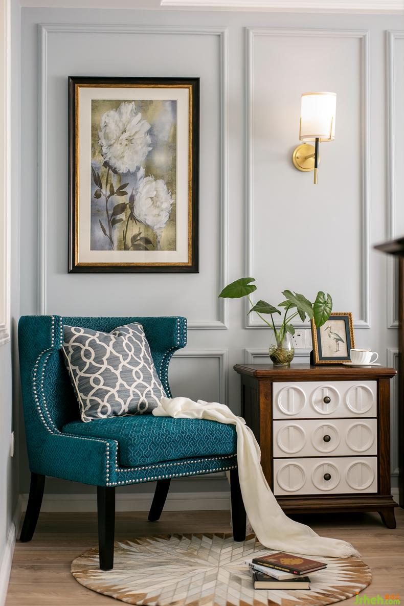 推開(kāi)主臥房門,映入眼便是清淺素花下的一席椅、一杯茶、數(shù)本書(shū)與幾簾夢(mèng)。