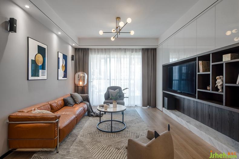 簡單的硬裝線條,勾勒出客廳的簡約開闊。橙色皮質(zhì)沙發(fā)點亮整個空間,真皮材質(zhì)耐臟易清理,適合有寶寶的家庭。便于搬動的茶幾和單人沙發(fā),留出足夠的空間給孩子們自由玩耍。深圳設計公司