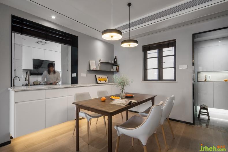 敲掉廚房部分墻體,讓餐廚空間充分互動。當女屋主在廚房忙碌的時候,還能和正在玩鬧的孩子們說話,男屋主偶爾也會在餐廳吧臺喝咖啡,一抬頭就能談天說地,烹飪也變成一種享受。