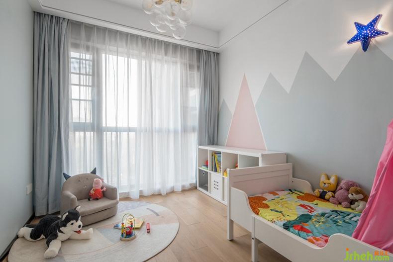 俏皮的拼色墻面,讓小寶貝的空間十分童趣。考慮到寶貝的成長(zhǎng)需求,兒童房全部采用活動(dòng)家具,以后可以根據(jù)小孩的成長(zhǎng)階段合理調(diào)整臥室格局。