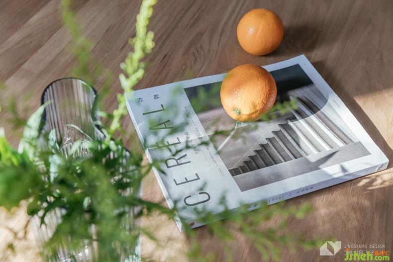 △愛馬仕橙沙發(fā)為空間帶來活力,柔和的胡桃木電視柜、灰色系地毯,點(diǎn)綴黃銅元素邊幾,為大氣的空間注入精致的氣息。