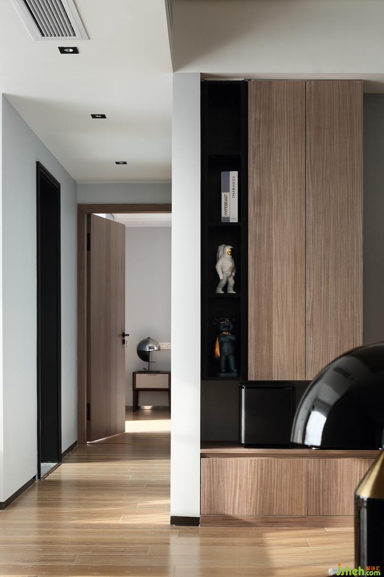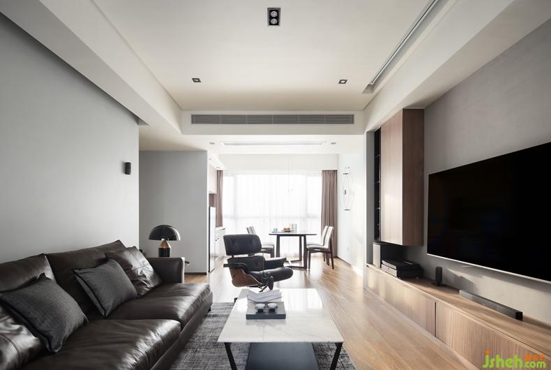 △簡潔的色彩,干凈的布局,讓客廳開闊明亮起來。木材的加入為空間帶來溫暖,避免深色調(diào)帶來的壓抑,碰撞出空間的層次感。