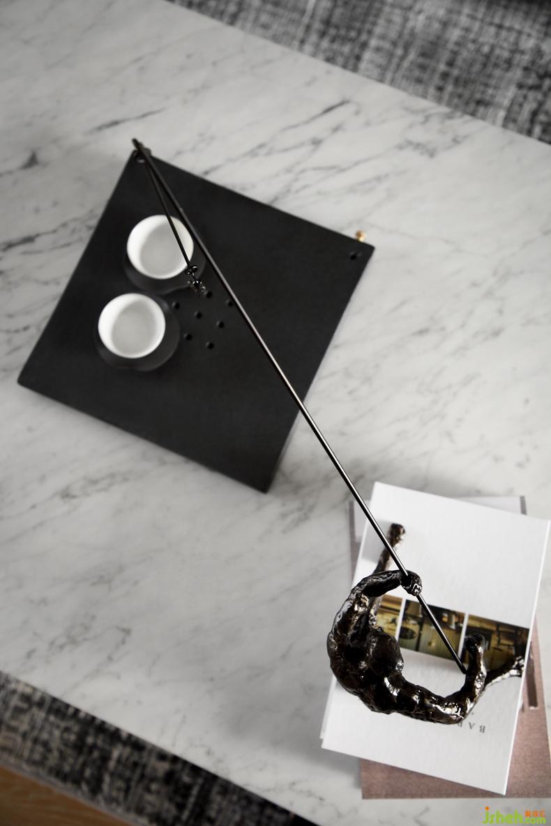 △黑色的燈具、擺件、裝飾畫,形成色彩的統(tǒng)一。造型獨(dú)特,線條感強(qiáng)烈,打破黑色帶來的沉悶,為空間氣質(zhì)帶來新的驚喜。