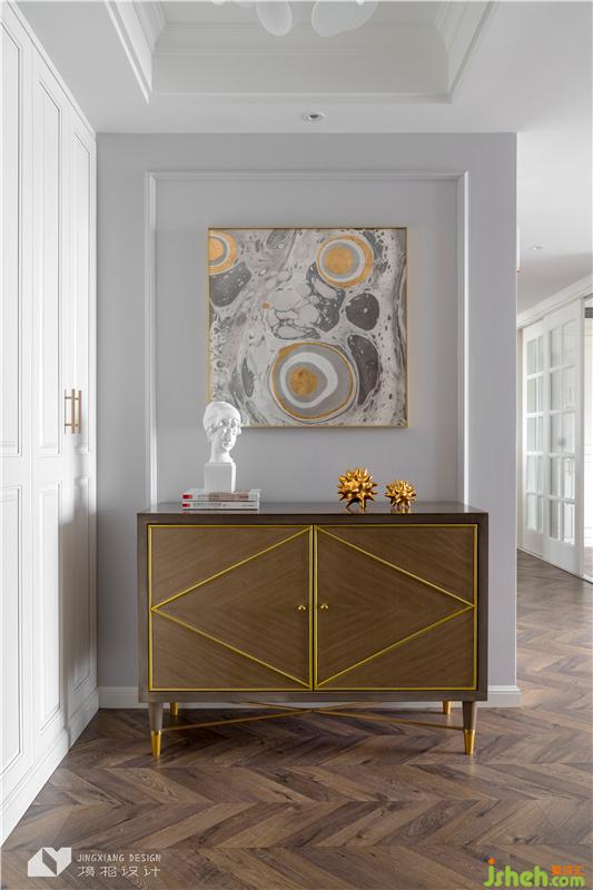 壓縮一間次臥后,不僅擁有流暢的動線,而且還能打造整排柜子,滿足業(yè)主的儲物需求。裝飾畫的懸掛和雕塑的存在為空間注入藝術(shù)氣息,實現(xiàn)了品質(zhì)和藝術(shù)的和諧統(tǒng)一。