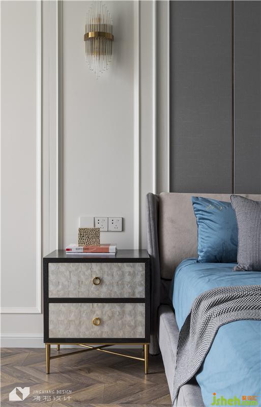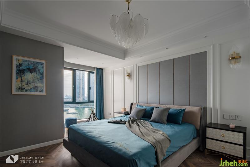 主臥以高級灰色調(diào)、沉靜的藍色為主,營造靜謐舒緩的睡眠環(huán)境。精致的壁燈、吊燈,提升了空間的質(zhì)感,內(nèi)斂中又不失優(yōu)雅格調(diào)。室內(nèi)設(shè)計師