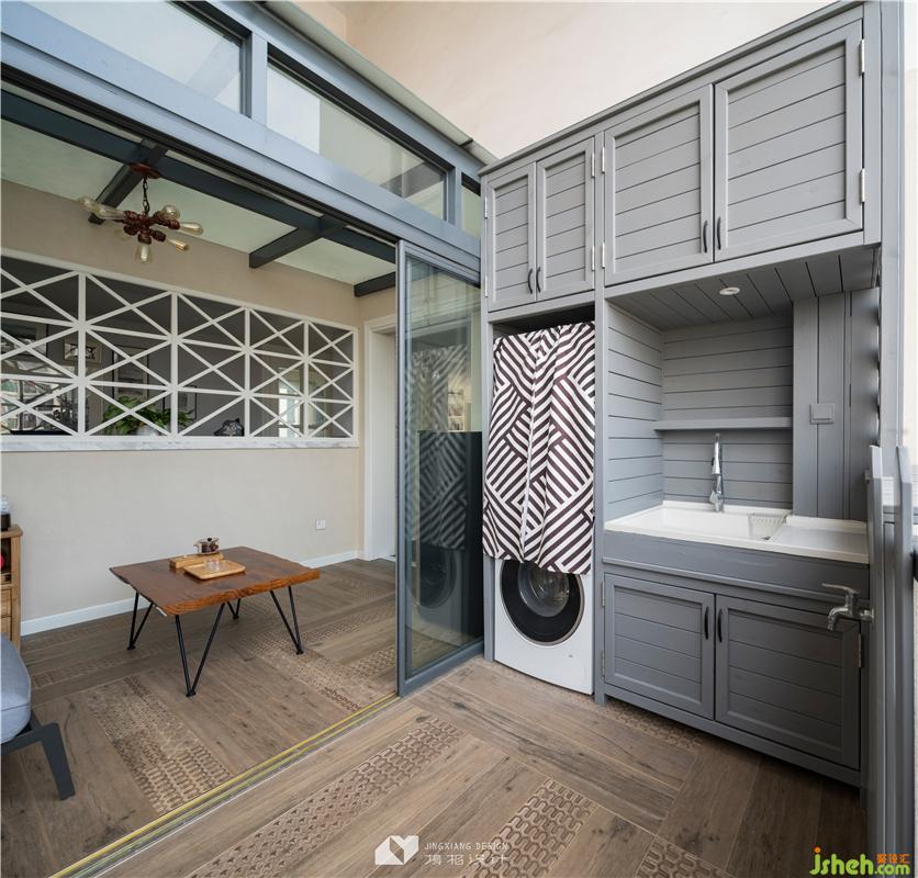 將陽臺一分為二,封閉式的陽光房可以做喝茶休閑使用,開放式的生活陽臺滿足洗衣晾衣養(yǎng)花的功能。一個是琴棋書畫,一個是柴米油鹽。生活的意義,在這里展現(xiàn)的淋漓盡致。室內設計師