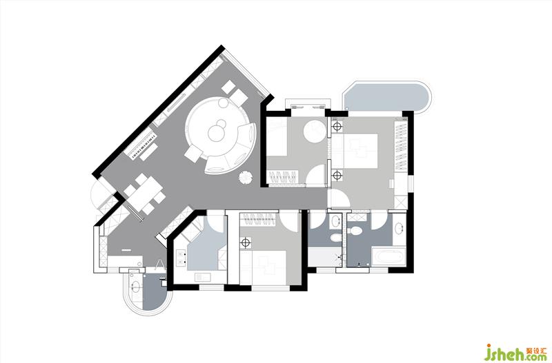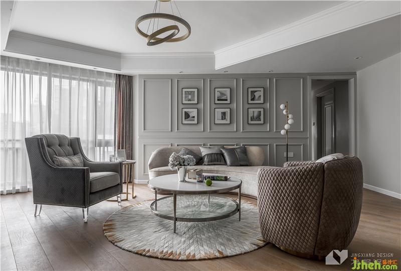 1、圍繞異形客廳采用圓形圍合式客廳,告別單調(diào)傳統(tǒng)客廳。