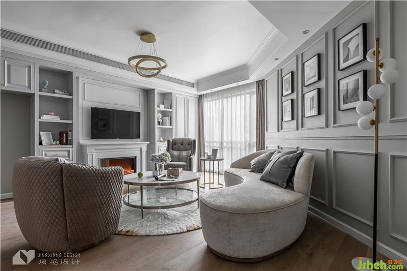 考慮到空間戶型,所以便打破傳統(tǒng)客廳。根據(jù)墻體動(dòng)線來(lái)設(shè)計(jì),選用弧形沙發(fā),圍合式設(shè)計(jì)更便于家人的情感交流。用石膏線條做硬裝上的視覺(jué)焦點(diǎn),簡(jiǎn)約大氣又不失優(yōu)雅氣息。室內(nèi)設(shè)計(jì)師