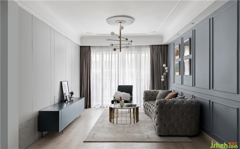 客廳空間簡約大方,灰白與灰藍(lán)的純色背景墻遙相呼應(yīng),室內(nèi)設(shè)計(jì)師既不失家的溫暖,又保證足夠耐看,色調(diào)上也多了幾分層次。