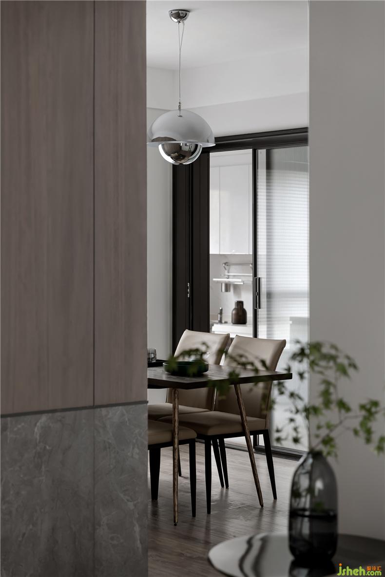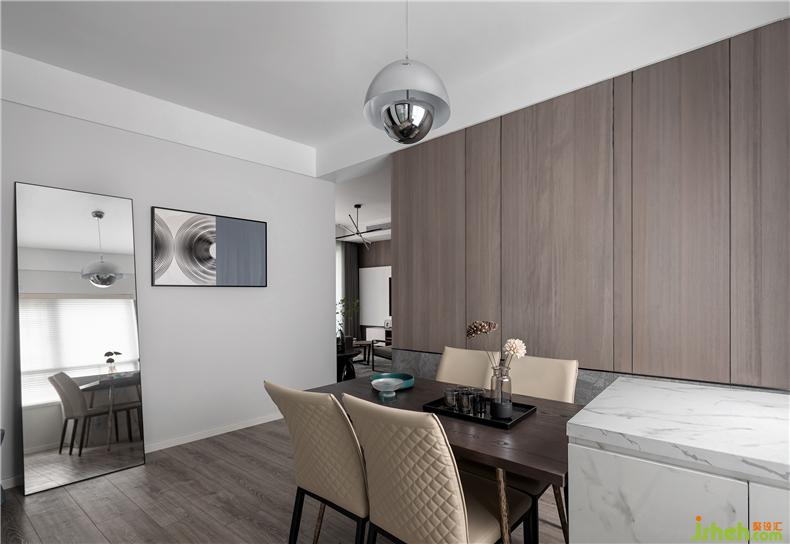 餐廳過道處還安放了一面落地穿衣鏡,方便屋主出行時(shí)整理儀容,室內(nèi)設(shè)計(jì)師同時(shí)讓空間視覺效果更通透。