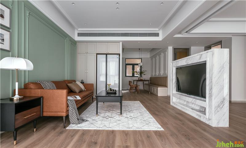 室內(nèi)設(shè)計(jì)師大理石電視背景墻正中隔斷,客廳、活動(dòng)區(qū)既獨(dú)立又相互關(guān)聯(lián),光線自由游走,空間明亮而寬敞。