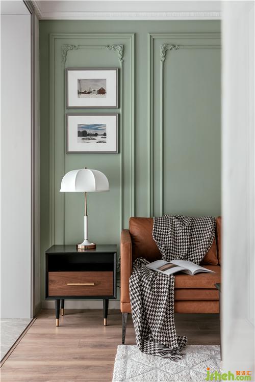 兩幅留白裝飾畫,與白色臺(tái)燈相呼應(yīng),客廳的一角也自成風(fēng)景。木地板紋理樸實(shí),觸感溫潤,融合羊毛地毯、抱枕等柔軟元素,裝點(diǎn)出更有溫度的家。