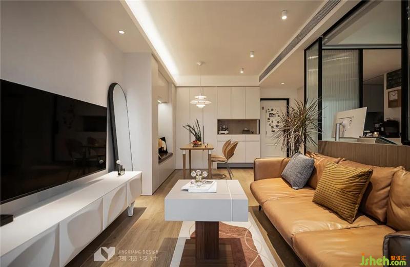 我們打通廚房、陽臺,打造開放式大廚房;將次臥改為書房兼客臥,用玻璃門代替墻體,獲取充足采光;L型儲物柜聯(lián)動玄關(guān)、客餐廳,解決收納難題……實(shí)現(xiàn)60㎡小戶型顏值、功能雙逆襲!