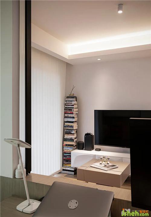 豎型百葉簾分割出客廳、陽臺的界限,卻不妨礙光線的游走,視覺更寬敞、明亮。