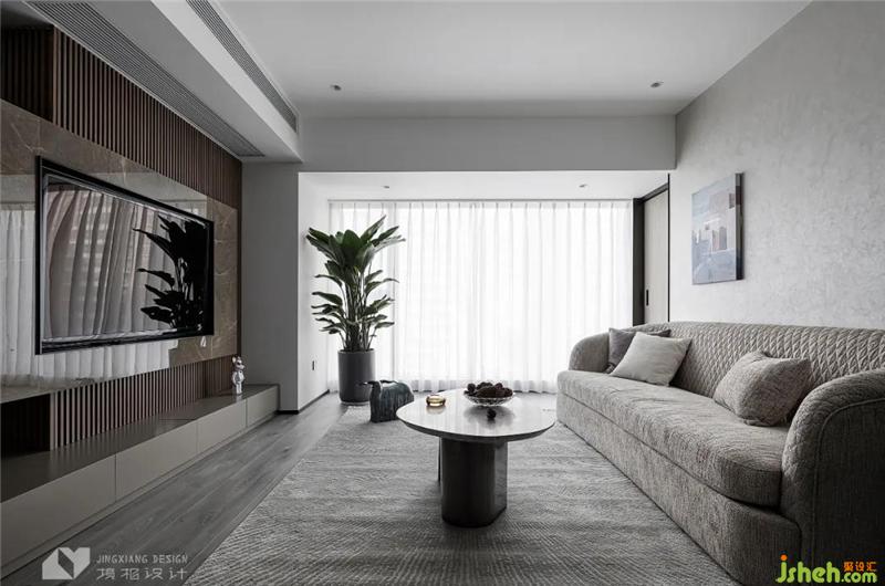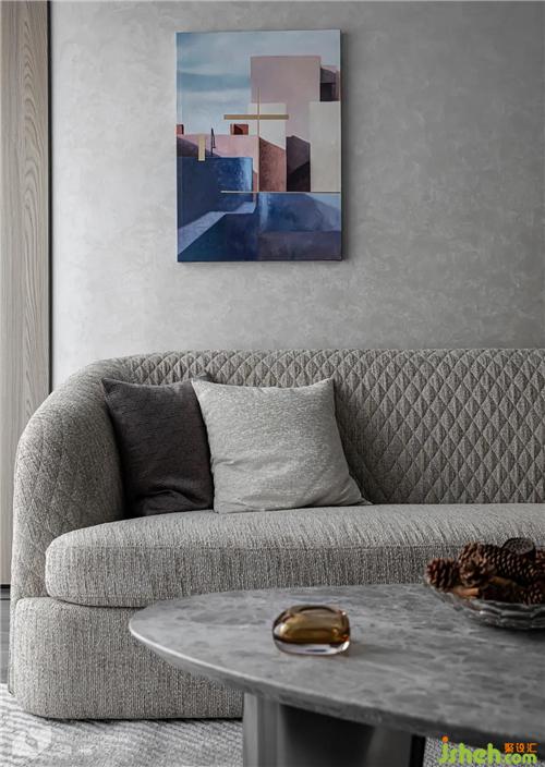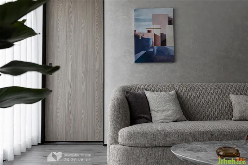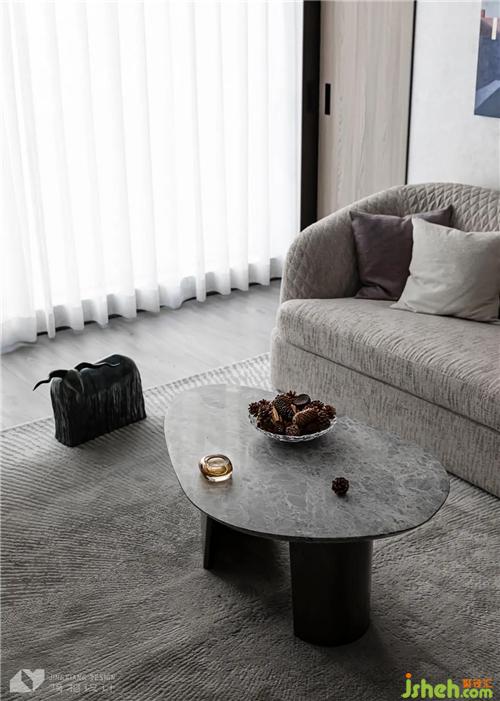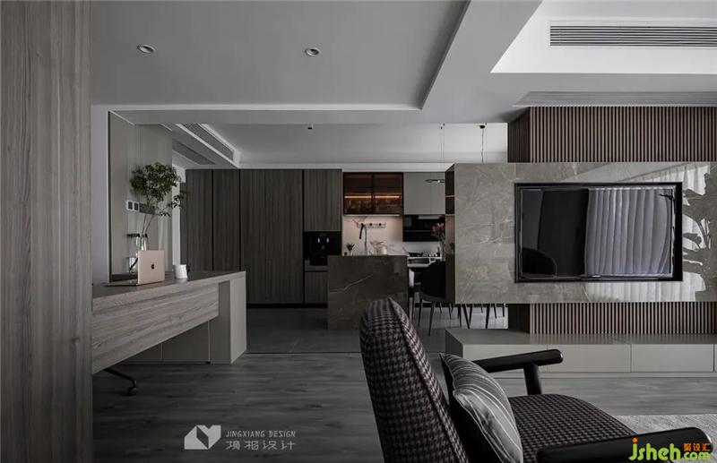 Based on low-saturated gray and white, it creates a casual and comfortable space atmosphere and quietly relaxes the mood. The regular stone is embedded in the smart wooden grille, which combines rigidity and softness, enriching the local spatial connotation.