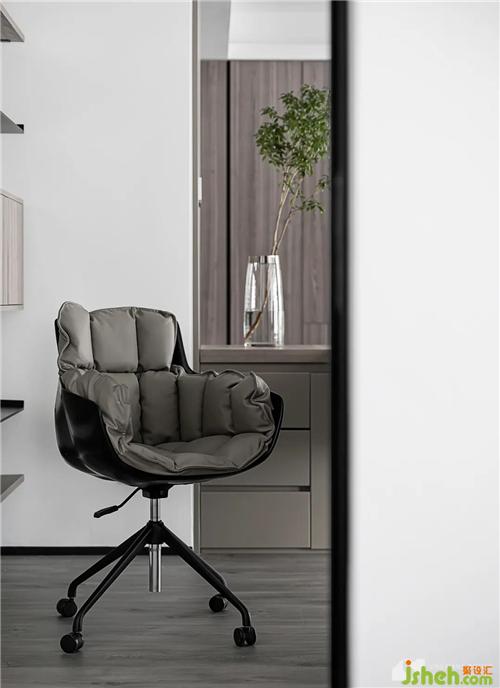 Use the L-shaped desk to cleverly divide the space boundary and create a sense of privacy in the study. The open bookcase is light in shape and deeply integrated with the open pattern to form a sense of integrity.