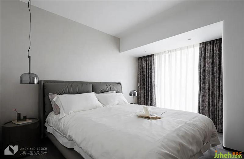 主臥用中性之白,調和冷感的高級灰,打造出一個純凈、通透的空間,在靜謐的氛圍里,入眠、閱讀,都可尋得舒適姿態(tài)。