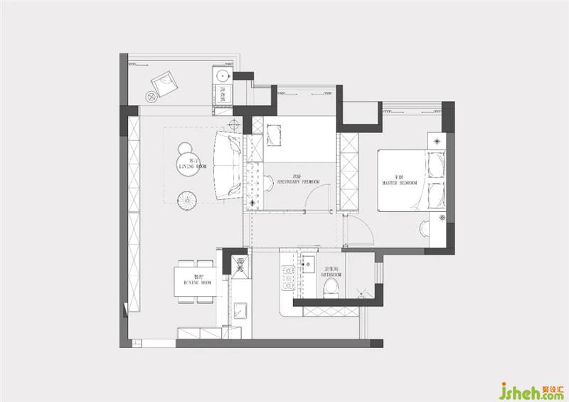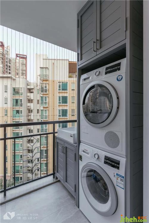 洗衣房布置于陽臺,與客廳以移門分割,給家務(wù)瑣事另辟一個空間,臥室與陽臺,一個是歲月靜好的安逸,一側(cè)是生活瑣碎的快樂,每一面都是生活真實的模樣。