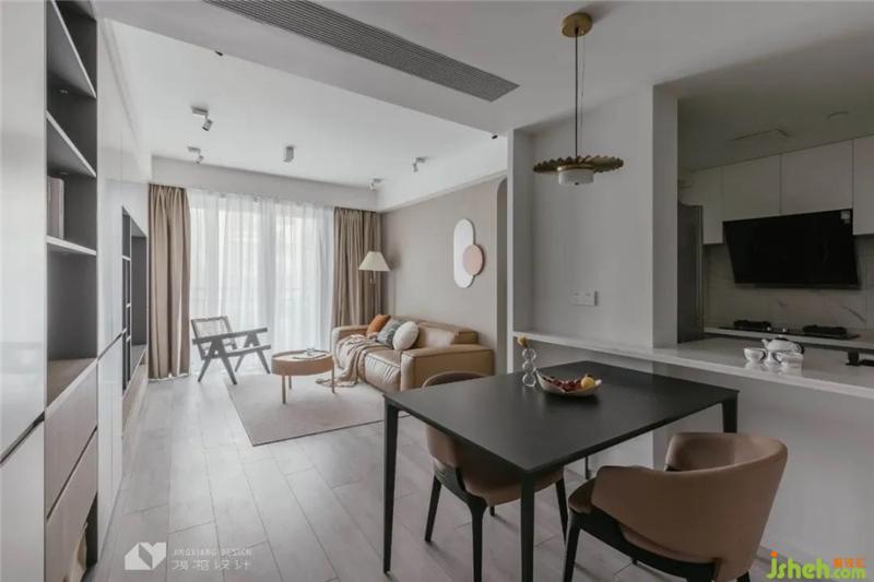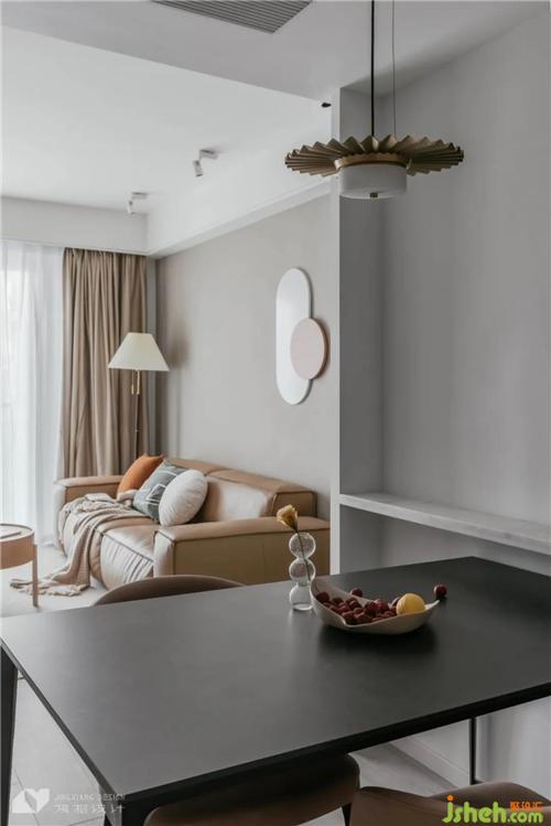 Open the kitchen, semi open design, let the kitchen space connect and interact, and give the family more communication space. White mystery increases visual space and broadens vision.Behind the dining table, a sideboard cabinet integrated with the island platform is built, which can be used for storage at the bottom and display platform at the top.