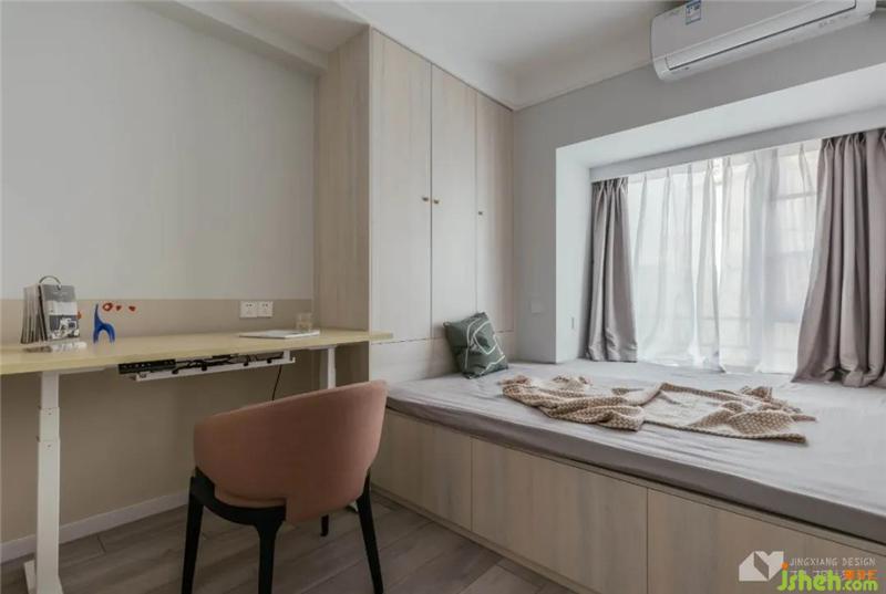 The secondary bedroom design is simple and warm, the integrated design of tatami and storage cabinet can meet the occasional living needs of parents at present stage. In the future, there will be babies in the family and more space to change.