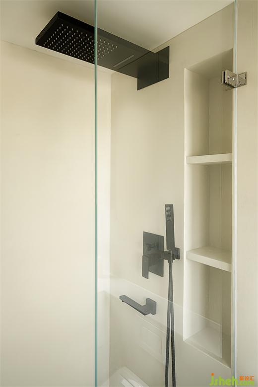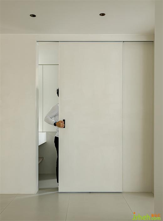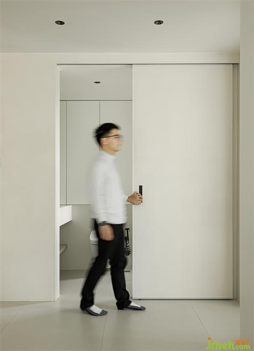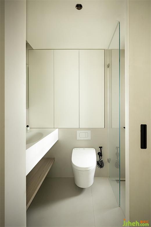 公衛(wèi)改動(dòng)門的位置和形式,境相設(shè)計(jì)為一扇移門為增加浴室柜的長(zhǎng)度,移門開合不占用空間,更加靈活便捷。